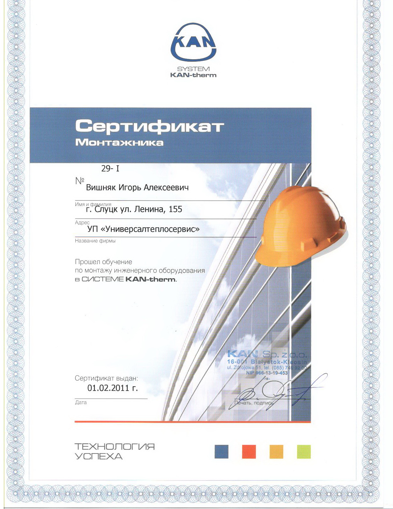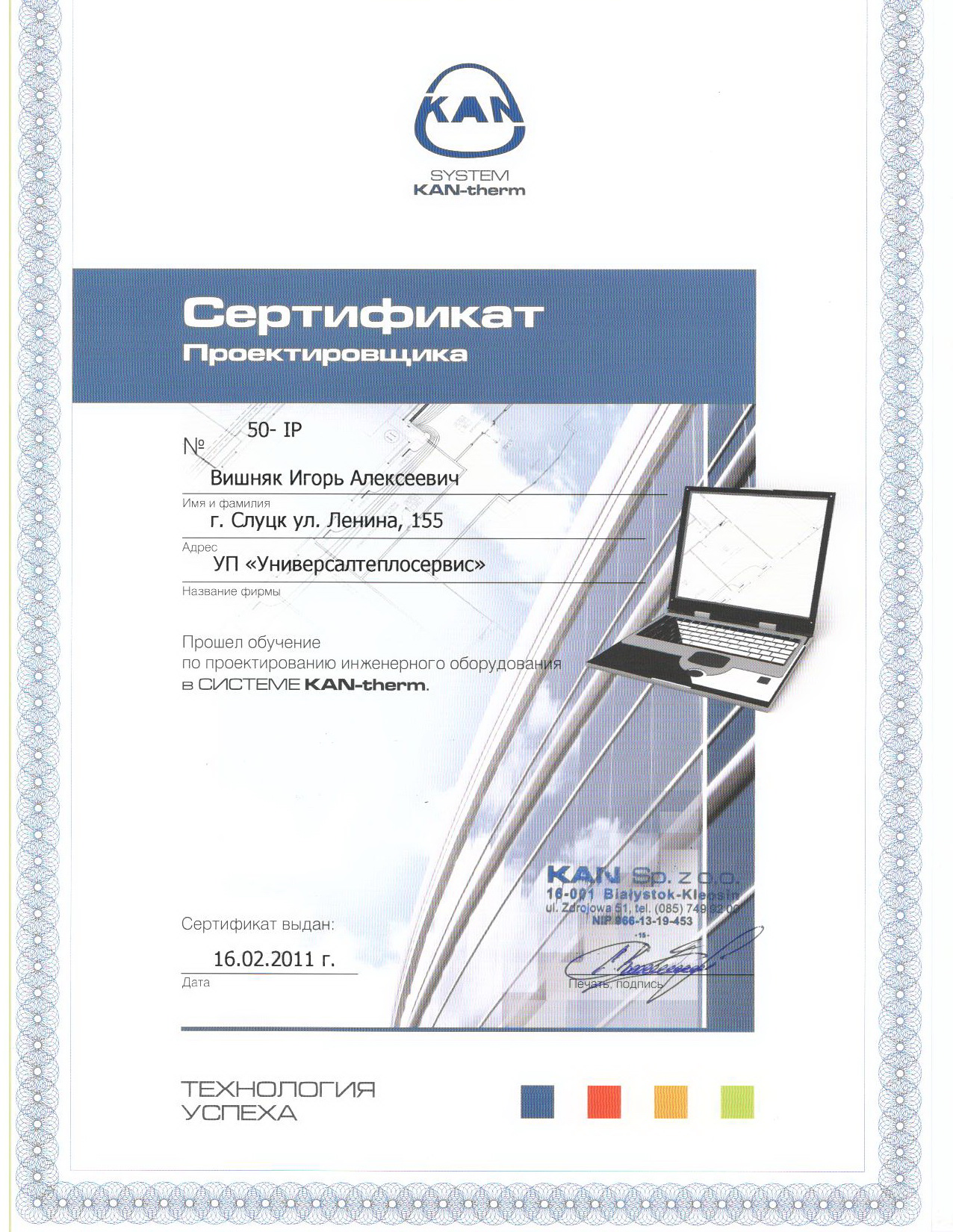 Помимо лицензии и прочих разрешительных документов, установленных законодательством Республики Беларусь, УП "УниверсалТеплоСервис" имеет сертификаты и допуски непосредственно от производителей материалов, с которыми мы работаем.