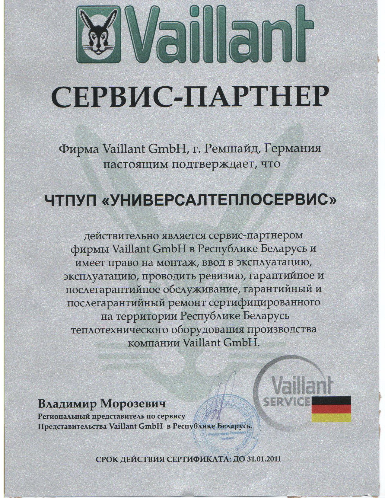 Фирма "УниверсалТеплоСервис" была основана профессионалами, работающими в области отопления и водоснабжения многие годы, имеет большой опыт работы на рынке отопительного оборудования. Инженера проходили обучение в газовом институте и специализированное обучение по монтажу и обслуживанию систем отопления на ведущих европейских фирмах Vaillant, Galmet, KAN, WILO и др. Фирма имеет прямой контракт с миноблгазом и входит в список сотруднических фирм, единственная в районе Слуцк, Солигорск, Любань, Старые дороги, Сторобин, Копыль. Также мы имеем прямой контракт с фирмой Vaillant в Германии. Сервисная служба каждый день выезжает на обслуживание и ремонт котлов разных марок по нашему региону.